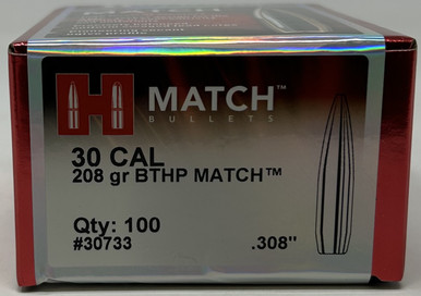 Hornady 30 Cal (.308 Dia) Reloading Bullets Match H30733 208 Grain Boat Tail Hollow Point 100 Pieces