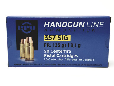 Prvi PPU 357 Sig Ammunition Handgun PPH357S 125 Grain Flat Point Jacketed 50 Rounds