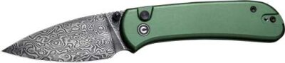 CIVIVI KNIFE QUBIT 2.98″ – GREEN/DAMASCUS BUTTON LOCK