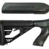The M4-style rear stock with pistol grip has an adjustable length-of-pull, oversized extra strength adjustment pin, and a non-slip vented rubber recoil pad. The forend features a 2″ Picatinny rail concealed under nose cap for attaching accessories.
