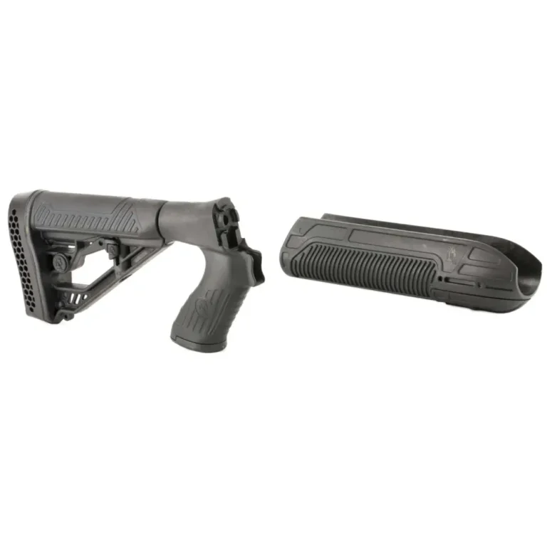 Optimized for pump shotguns, the advanced design features and high-impact, polymer construction of Adaptive Tactical’s EX Performance Adjustable Stock and Forend make it an ideal choice when upgrading your Mossberg 500 & 88 (see NOTE), 590 series 12 gauge pump shotgun. The EX Performance Forend features a 2″ Picatinny rail concealed under the nose cap. Uncovered, it is ideal for attaching tactical accessories such as lasers or lights. It is constructed of durable of high performance, lightweight polymer. The EX Performance M4-style stock with pistol grip features an easy-to-reach rapid adjust lever for custom length-of-pull, and includes an integrated QD swivel attachment and molded in non-rust standard sling swivel attachment. It features durable polymer construction with non-slip vented rubber recoil pad, oversized extra strength adjustment pin, and sleek industrial design.