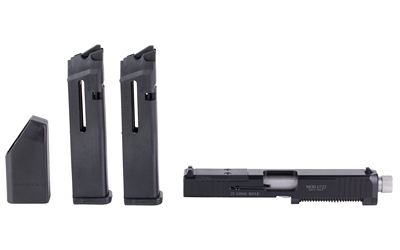 Advantage Arms Conversion Kit: Convert your 9mm/.40 S&W Glock down to 22lr so trips to the range don’t break the bank. The MOD series is meant to fit Glock 17/22 Gen 4 and includes two 15 round magazines, a 5″ threaded barrel, a range bag, and a recessed cut for a variety of red dot options. It’s the perfect tool to work on your muscle memory or to have some fun with your 22lr can. Red Dot Not Included.