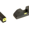 AmeriGlo CAP (Combat Application Pistol) sets allow the shooter to align a highly visible front post with a brightly colored horizontal paint bar on the rear sight for rapid target acquisition. Point of impact is the A-Box at 15 yards when any portion of the front sight is visible in the rear notch, allowing for rapid sight alignment.