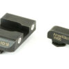 Sight set with green tritium lamp, orange or luminescent green outline front and two green tritium lamp, white outline rear for Glocks. Highly visible under all lighting conditions. LumiGreen paint will glow brightly for 10 minutes after light exposure.