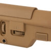 The B5 Systems Collapsible Precision Stock (CPS), Medium. Building upon the venerable cheek profile of the B5 SOPMOD and Bravo stocks, the Precision stock incorporates an adjustable cheekpiece and buttpad while fitting Milspec carbine receiver extensions. Features internal tensioners, ambidextrous fixed and quick disconnect sling mounts, gross length of pull adjustment via pull down with lockout, underside M-LOK accessory mount, and color matched hardware. The CPS Medium fully collapsed will clear the M4 charging handle. Proudly made in the USA.