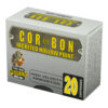 COR(R)BON JHP(TM) is the traditional hollow point that put COR(R)BON on the map. JHP(TM) is proven ammunition that provides reliable penetration and expansion. The internal and external serrations and soft lead cavity provide stopping power and an average penetration of 9 to 15 inches in ballistic gelatin.