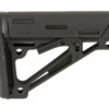 Hogue’s AR-15 Collapsible 6-Position Overmolded Stock uses technology that merges a durable polymer core with the soft comfort of rubber overmolding. This process creates a desirable collapsible stock that provides the ultimate in comfort along with weapon control. Hogue Overmolded buttstocks for the AR-15 platform are designed to retain the important lines and aesthetics of the rifle while also providing the enhanced performance of rubber overmolding. The overmolding process creates a durable, comfortable stock that will last you for many years to come, and it is beard friendly! This stock assembly kit includes a commercial diameter buffer tube, carbine buffer, buffer spring, end plate and castle nut.