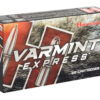 Hornady Varmint Express ammunition is designed around the hard-hitting performance of the famous V-MAX bullet. Polymer tipped V-MAX bullets deliver match accuracy, high ballistic coefficients, wind defying trajectories, and rapid fragmentation upon contact. Each Varmint Express offering is loaded with high quality cases and carefully selected propellant and primers that are chosen to provide the best performance in each individual load.