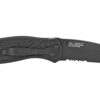 The Tanto Blur offers all the great grip advantages of the other Blurs on the force, but this one offers tactical styling with a modified tanto blade with partial serration. With its angled shape, the tanto blade provides additional piercing power to penetrate tough materials. The unique shape puts more steel behind the point to support its piercing tasks. Kershaw also found that the short front edge is particularly handy for opening boxes. For razor sharpness, Kershaw hollow grinds the edge. Then for additional versatility, Kershaw added partial serration to the blade, giving you a great tool for cutting through materials such as webbing or rope. All this makes the Tanto Blur a good choice for situations in which you’re going to need to make an impact on your environment. In an emergency, it could be a real lifesaver. The Tanto Blur’s blade is built of high-performance Sandvik 14C28N stainless blade steel for corrosion resistance and hardness. The black DLC (Diamond-Like Carbon) coating provides additional extra corrosion resistance and is non-reflective. Black anodized aluminum handles of durable 6061-T6 aircraft aluminum with sure-grip Trac-Tec inserts complete the Tanto Blur’s discrete, matte look.