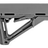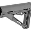 The Magpul CTR (Compact/Type Restricted) – Mil-Spec Model is a drop-in replacement buttstock for AR15/M16 carbines using mil-spec sized receiver extension tubes. Designed for light, fast action the streamlined A-frame profile avoids snagging and shields the release latch to prevent accidental activation. The CTR also features a supplemental friction lock system that minimizes excessive stock movement for enhanced weapon stability and an ambidextrous QD sling mount that will accept any push-button sling swivel. The Mil-Spec Model includes a standard 0.30″ thick rubber butt-pad which provides positive shoulder purchase to prevent slippage even with body armor or modular gear.
