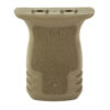 A Compact textured vertical grip designed to minimize material and dimension while providing a positive grip surface. Allows the support hand to apply rearward pressure, keeping the weapon shouldered, yielding better muzzle control and accuracy.