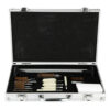This Universal Cleaning Kit Includes: 2 Sets of Cleaning Rods, 2 Rod Adapters, T-Handle for a sure grip, 2 Slotted Tips for Patches, 10 Bronze Bore Brushes, 5 Bore Mops and Aluminum Carrying case.