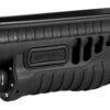 The SFL-13GL shotgun forend weapon light with green laser is a complete forend replacement for your 12 gauge Remington 870 and TAC-14 pump-action shotgun. Built from a one-piece body of heavy-duty glass-filled nylon with an over-molded rubber grip area, it features a super-bright LED rated at 1200 lumens with an hour and a half runtime. Designed around a high-efficiency deep parabolic reflector, the tightly focused beam has a 203-meter beam distance.