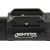The TWM-350 Full Size Weapon-Mounted Light uses an LED rated at 350 lumens working in conjunction with a high-efficiency deep parabolic reflector to create a usable beam of light rated at 215 meters. This weapon light features a unique and completely ambidextrous toggle switch on each side of the light to operate the momentary-on and constant-on lighting modes. The housing of the TWM-350 is constructed from aircraft-grade 6061-T6 aluminum with a glass-filled nylon polymer battery door and toggle switch. Power comes from two included CR123 batteries. (Not compatible with rechargeable batteries.)