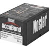 Through an exclusive bonding process that eliminates voids in the bullet core, AccuBond(R) couples Nosler’s proven copper-alloy jacket with its special lead-alloy core. The result is a bullet that flies true, penetrates deep and retains its weight, without causing extensive barrel fouling. The unique white polymer tip resists deforming and initiates expansion on impact. Nosler’s Solid Base(R) at the rear of the bullet acts as a platform for large diameter mushrooms.