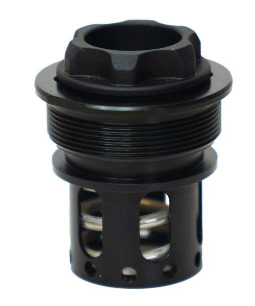 The Universal Cage Accessory can be used to run the Alaskan360 on 9mm pistols and sub guns. The Universal Cage Accessory comes with a cage spring retainer and multi-tool. Pistons in a variety of thread pitches are sold separately. – The Universal Cage Accessory allows for existing Obsidian 9mm mounting options (Booster Assemblies Fixed Mounts and 3-Lug Mount) to be use with the Alaskan360. – The multi-tool that is included with the Universal Cage Accessory uses a 11/16 inch hex to install the desired mounting option. (Rugged Suppressors recommends a torque of 25 ft-lb.)