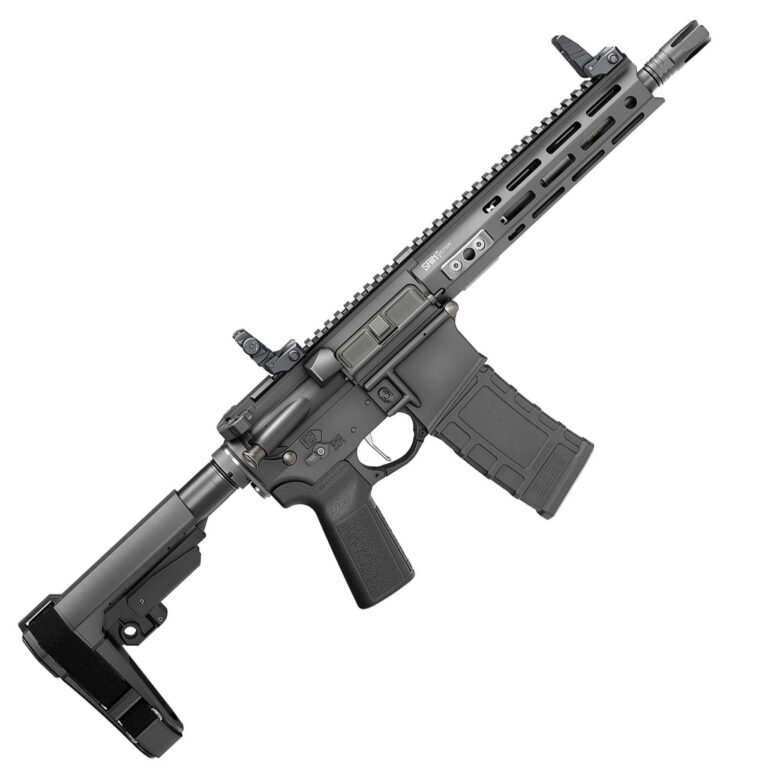 SAINT VICTOR PISTOL 300BLK 9.6″ 30RD SBA3 BRACE FORGED 7075-T6 RECEIVERS; 9310 ENHANCED BOLT CARRIER GROUP; PINNED GAS BLOCK; FREE FLOAT HANDGUARD; FLIP UP SIGHTS; AMBI CHARGING HANDLE; 1X30RD MAGAZINE