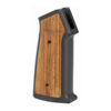 This aluminum pistol grip for AR-15 features attractive Cherry Wood inserts that have been treated with tung oil. The kit also comes with (2x) matching Cherry Wood M-LOK rail panels.