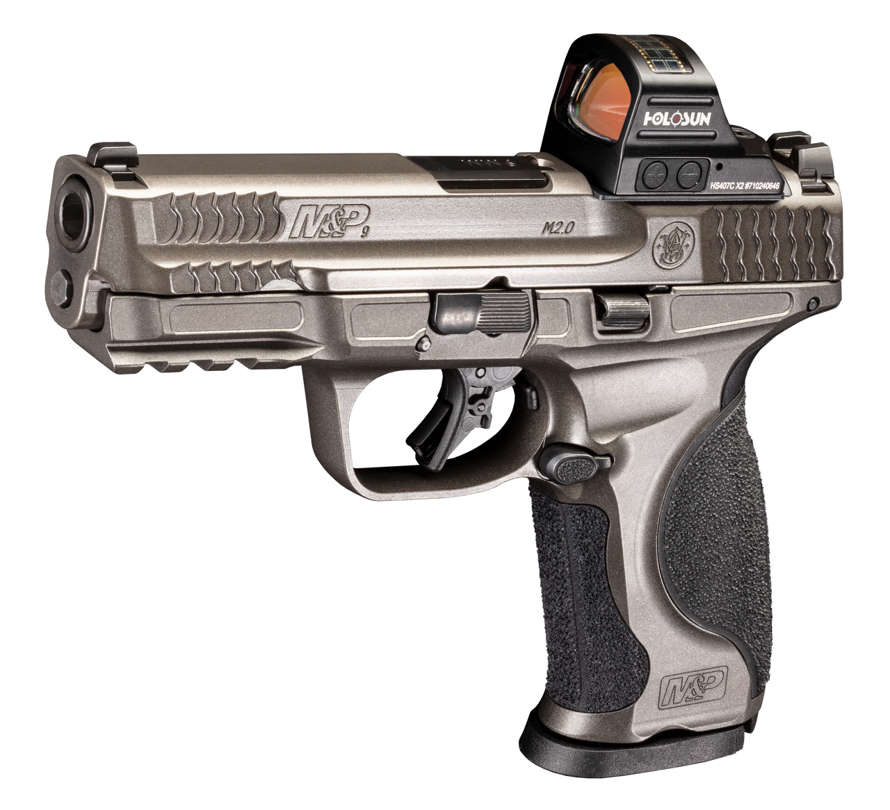 Smith & Wesson M&P9 M2.0 Metal, Striker Fired, Semi-automatic, Metal Frame Pistol, Full Size, 9MM, 4.25″ Barrel, Cerakote Finish, Tungsten Gray, Three Dot Sights, 17 Rounds, 2 Magazines, Includes Holosun HS407C X2 Red Dot Optic 13971