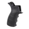 This is the UTG Pro ambidextrous pistol grip for the AR-15. The ergonomic symmetrical palm swells reduce fatigue and improve handling comfort. Its nonslip textured beavertail, palm swells and finger grooves provide for a secure and repeatable grip. It features a built in storage compartment with a removable end cap for small parts, batteries and or other accessories.