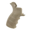 This is the UTG Pro ambidextrous pistol grip for the AR-15. The ergonomic symmetrical palm swells reduce fatigue and improve handling comfort. Its nonslip textured beavertail, palm swells and finger grooves provide for a secure and repeatable grip. It features a built in storage compartment with a removable end cap for small parts, batteries and or other accessories.