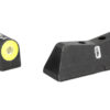 XS DXT2 Big Dot Night Sights offer the best front sight visibility in all lighting conditions. DXT2 Big Dot sights drive focus to the front sight using a high-contrast front and a V-notch rear for an unobstructed view of the front sight. DXT2 Big Dot front sights use a patent pending glow dot that absorbs light and glows in low light levels before it is dark enough to see the tritium. Optic Yellow is the best option for low light and has the brightest glow intensity. Primarily based on the white light spectrum, optic yellow is very reflective and will excite the photoluminescent properties of the dot faster than any other color. The increased surface area of the convex dot increases light absorption, intensifying the charge of the glow properties of the dot. The dot-the i sight picture, with a tritium dot in the front sight and a tritium bar in the rear, prevents confusing the front and rear sight in high-stress situations. The wide field of view increases visibility of the front sight and of the threat downrange.