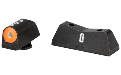 XS DXT2 Big Dot Night Sights offer the best front sight visibility in all lighting conditions. DXT2 Big Dot sights drive focus to the front sight using a high-contrast front and a V-notch rear for an unobstructed view of the front sight. DXT2 Big Dot front sights use a patent pending glow dot that absorbs light and glows in low light levels before it is dark enough to see the tritium. Optic Orange is designed to offer a high-contrast sight picture when shooting in bright light conditions and maintain its visibility in decreasing light levels. To ensure visibility in low light when uncharged, optic orange is primarily based on yellow with a hint of red. The increased surface area of the convex dot increases light absorption, intensifying the charge of the glow properties of the dot. The dot-the i sight picture, with a tritium dot in the front sight and a tritium bar in the rear, prevents confusing the front and rear sight in high-stress situations. The wide field of view increases visibility of the front sight and of the threat downrange.