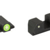 XS R3D Night Sights feature a traditional 3-dot tritium, notch and post sight picture. The blacked out rear increases contrast against the front sight. Available in orange or green, the front sight ring is equipped with their Ember Glow Dot Technology which absorbs ambient light and glows in low light. R3D sights are the brightest options for fast and accurate shooting in bright and low light. Green is the best option for low light and has the brightest glow intensity. Orange contrasts the best in bright light settings while still maintains visibility in low light. The front sight tritium lamp is brighter than the 2 rear sight lamps, reducing the possibility of mixing up the front sight tritium vial with a rear sight vial in low/no light. The front blade measures 0.145″ (3.68 mm) wide, and the rear notch is 0.170″ (4.32 mm) wide, which increases the visibility of the front sight. R3D sights are installable by sight pusher tools or by using a hammer and punch. Fits Springfield HellCat OSP.
