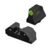 XS R3D Night Sights feature a traditional 3-dot tritium, notch and post sight picture. The blacked out rear increases contrast against the front sight. Available in orange or green, the front sight ring is equipped with their Ember Glow Dot Technology which absorbs ambient light and glows in low light. R3D sights are the brightest options for fast and accurate shooting in bright and low light. Green is the best option for low light and has the brightest glow intensity. Orange contrasts the best in bright light settings while still maintains visibility in low light. The front sight tritium lamp is brighter than the 2 rear sight lamps, reducing the possibility of mixing up the front sight tritium vial with a rear sight vial in low/no light. The front blade measures 0.145″ (3.68 mm) wide, and the rear notch is 0.170″ (4.32 mm) wide, which increases the visibility of the front sight. R3D sights are installable by sight pusher tools or by using a hammer and punch. Might require filing rear sight to fit. Fits Glock models 43X & 48. Suppressor Height and lower third co-witnesses with Glock factory cut and RMR.