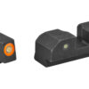 XS R3D Night Sights feature a traditional 3-dot tritium, notch and post sight picture. The blacked-out rear increases contrast against the front sight. The front sight is available in orange or green and is equipped with Ember(R) Glow Dot Technology. Ember absorbs ambient light and glows in low light. The front tritium lamp charges the Ember dot making the front sight glow brighter than the rear at all times, keeping focus downrange. R3D sights are the brightest notch and post option for fast and accurate shooting in bright and low light.
